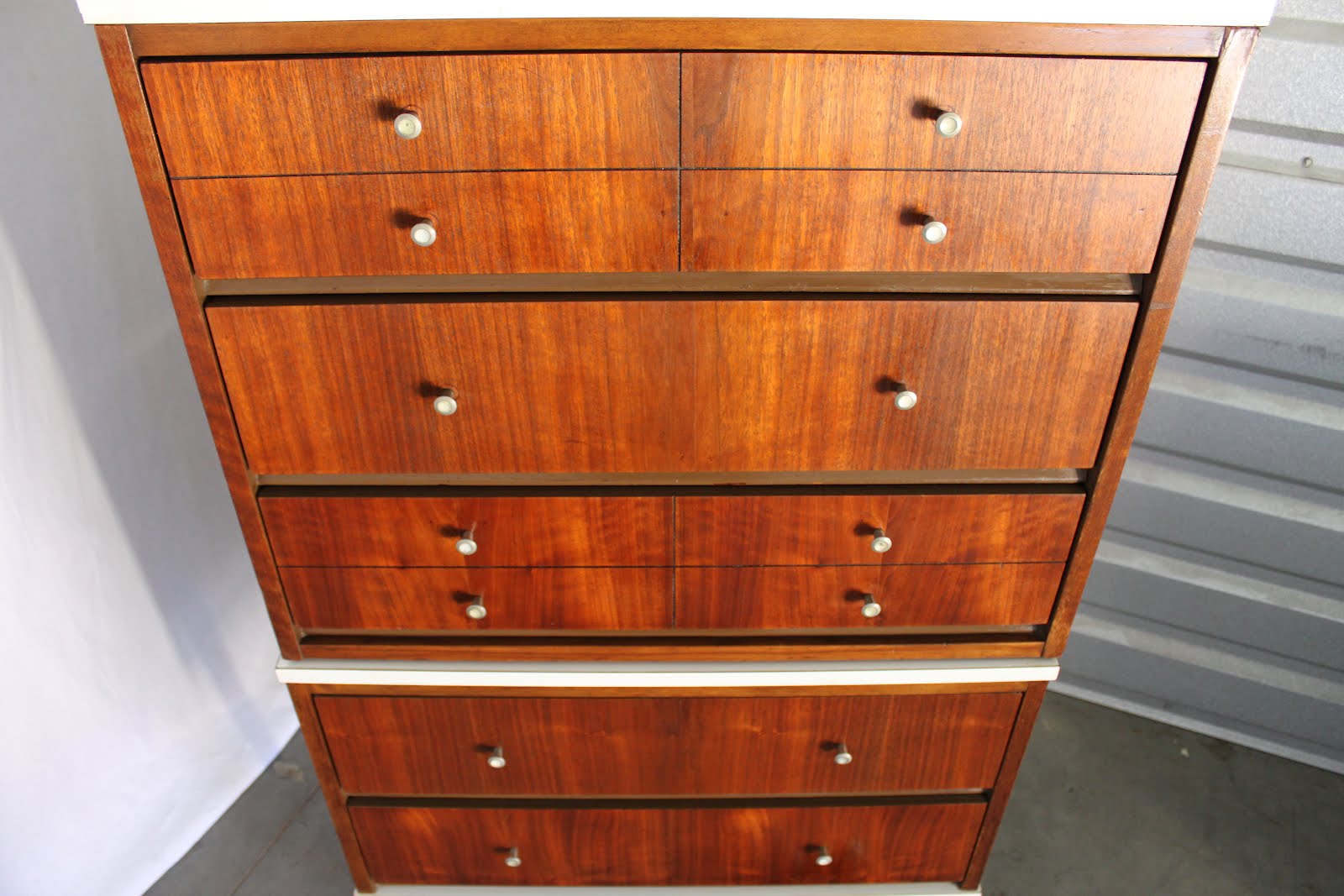 A fantastic dark walnut modular piece with an extra set of conical legs...combines into a gorgeous highboy as shown, or separates into two smaller chests when extra legs added: